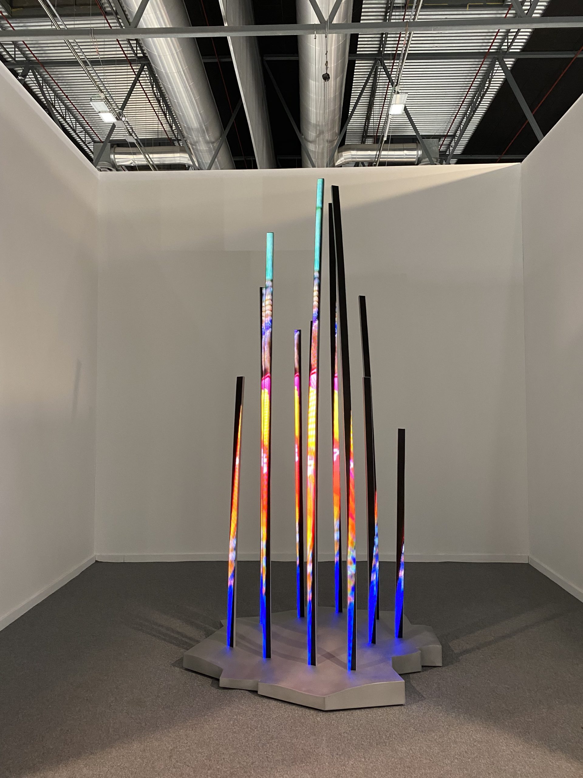 Destacan las instalaciones de Daniel Canogar expuestas en los stands de las galerías Max Estrella y Anita Beckers, que incorporan un software generativo dando lugar a llamativas propuestas visuales.