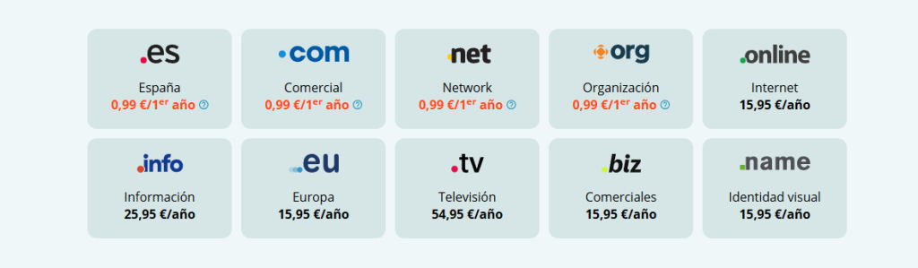 - .com.es, .org.es y .nom.es: desde 8,95 €/año