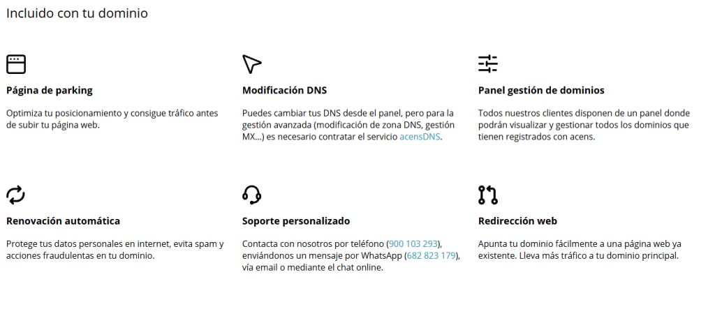 Si tienes dudas o quieres asesoramiento personalizado antes de elegir tu dominio, estamos a tu disposición en el 900 103 293 o por WhatsApp en el 682 823 179. Tu identidad digital empieza por un buen dominio, y en acens te ayudamos a encontrarlo.